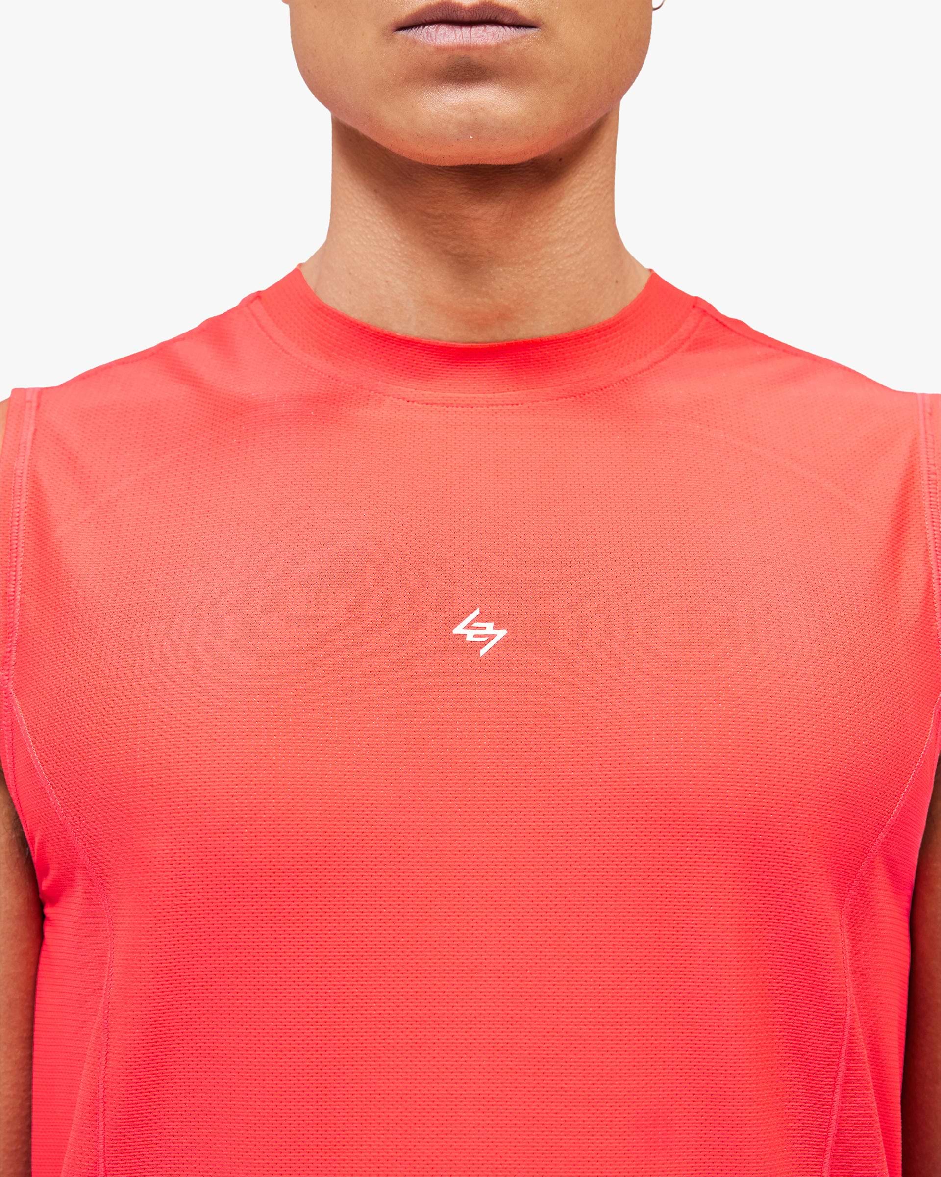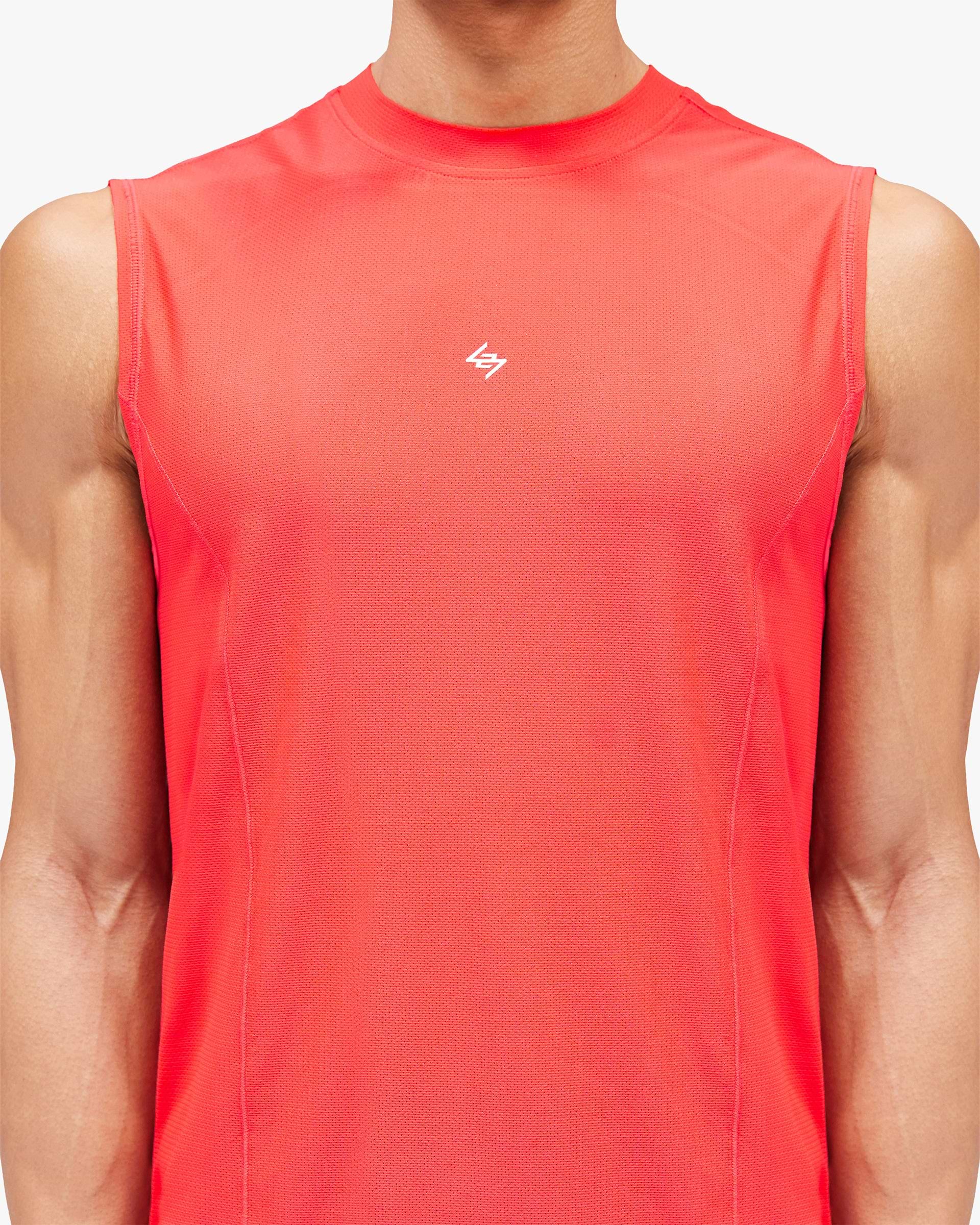 Introducing the 247 Hybrid Tank in Red Fade Out. Constructed from lightweight mesh fabric with panelled Merrow stitch detail, this tank delivers anti-bacterial properties, wicking performance and quick-dry technology for unrestricted training across disciplines. A printed back panel in an ultra fade-out finish brings vintage athleticism to modern performance. Built for strength, running and hybrid fitness.