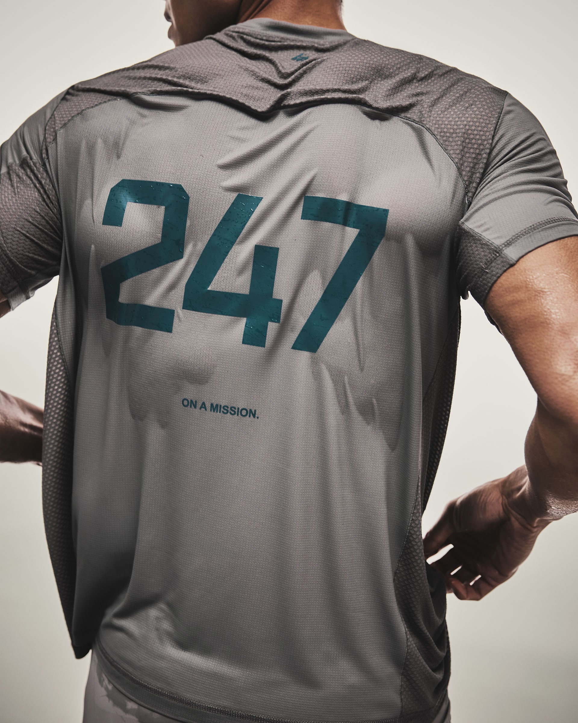 - 247 Numbers branding to chest, On A Mission lock-up to centre back