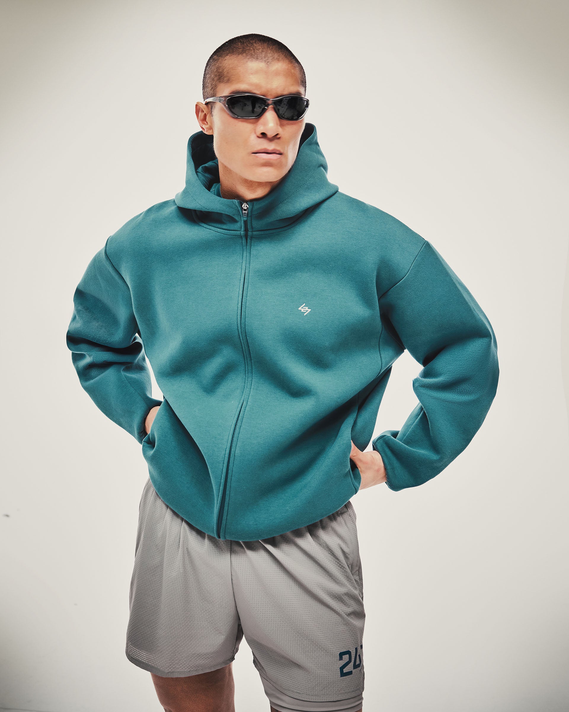 - Zip pockets to hips with branded 247 zip heads