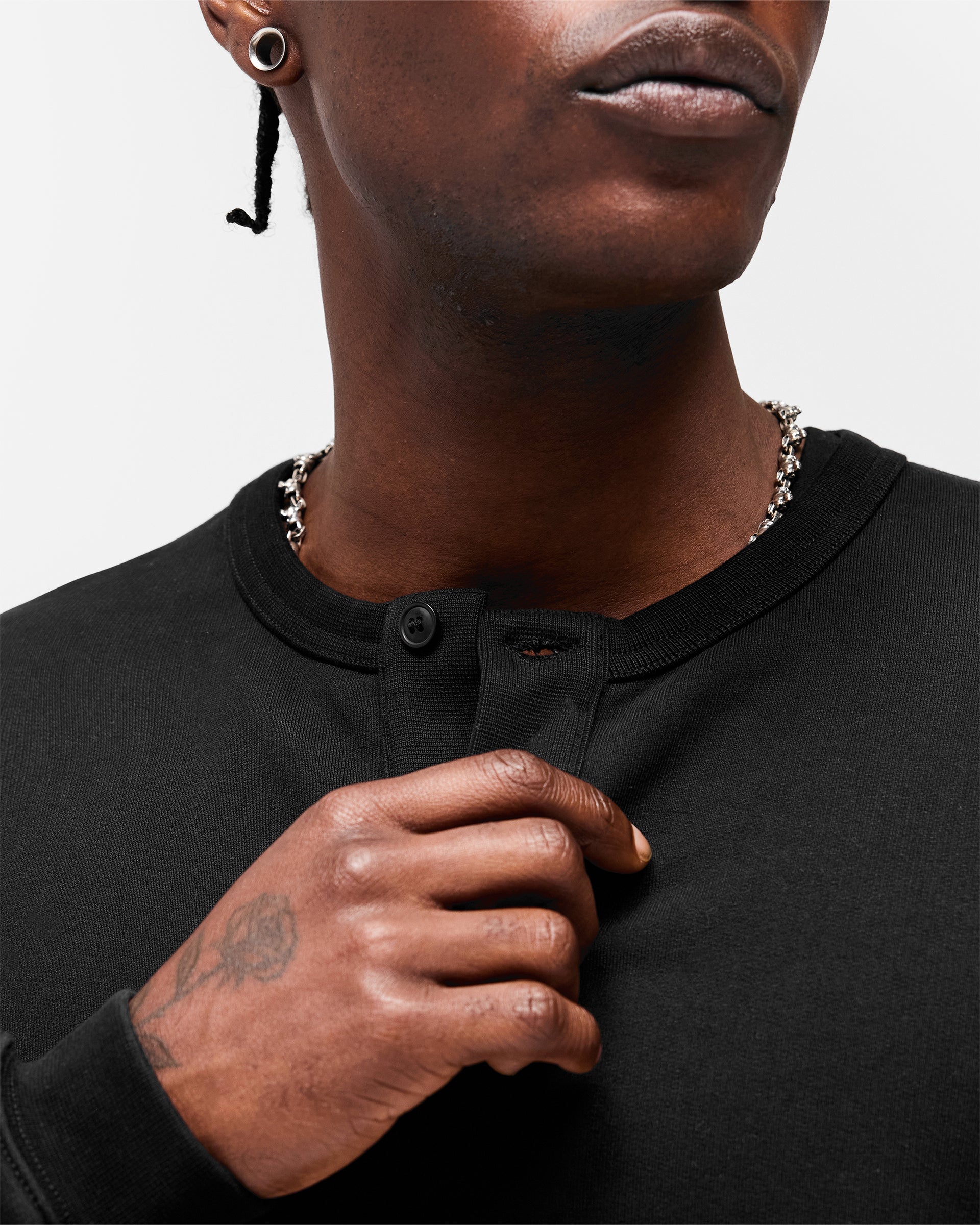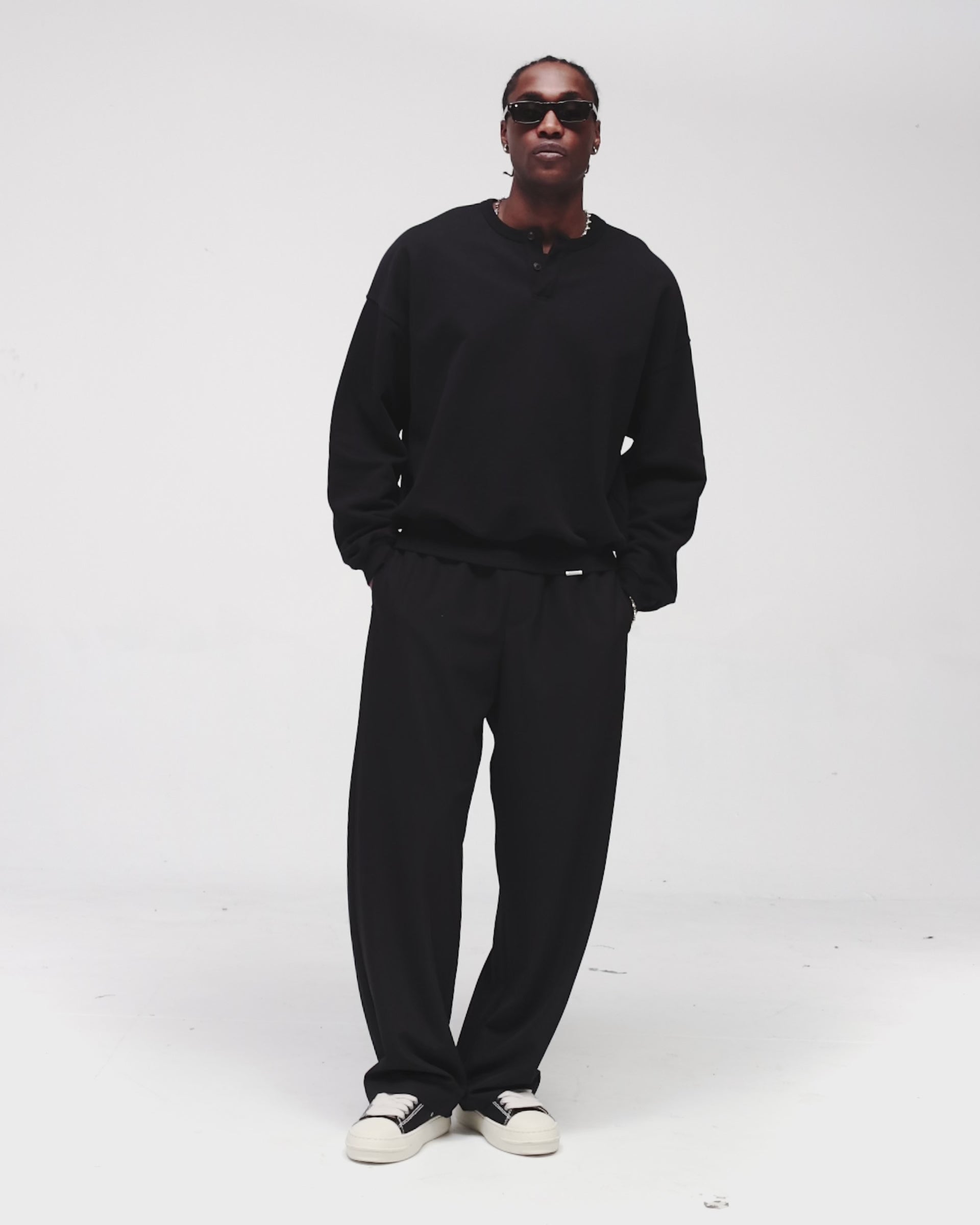 Introducing the Initial Henley Collar Sweatshirt in Jet Black, an oversized silhouette crafted from 390gsm cotton in a clean solid colourway. Designed with relaxed proportions, the piece delivers everyday comfort with a premium weight and substantial hand feel, elevated by a grandad collar and button placket for refined versatility.