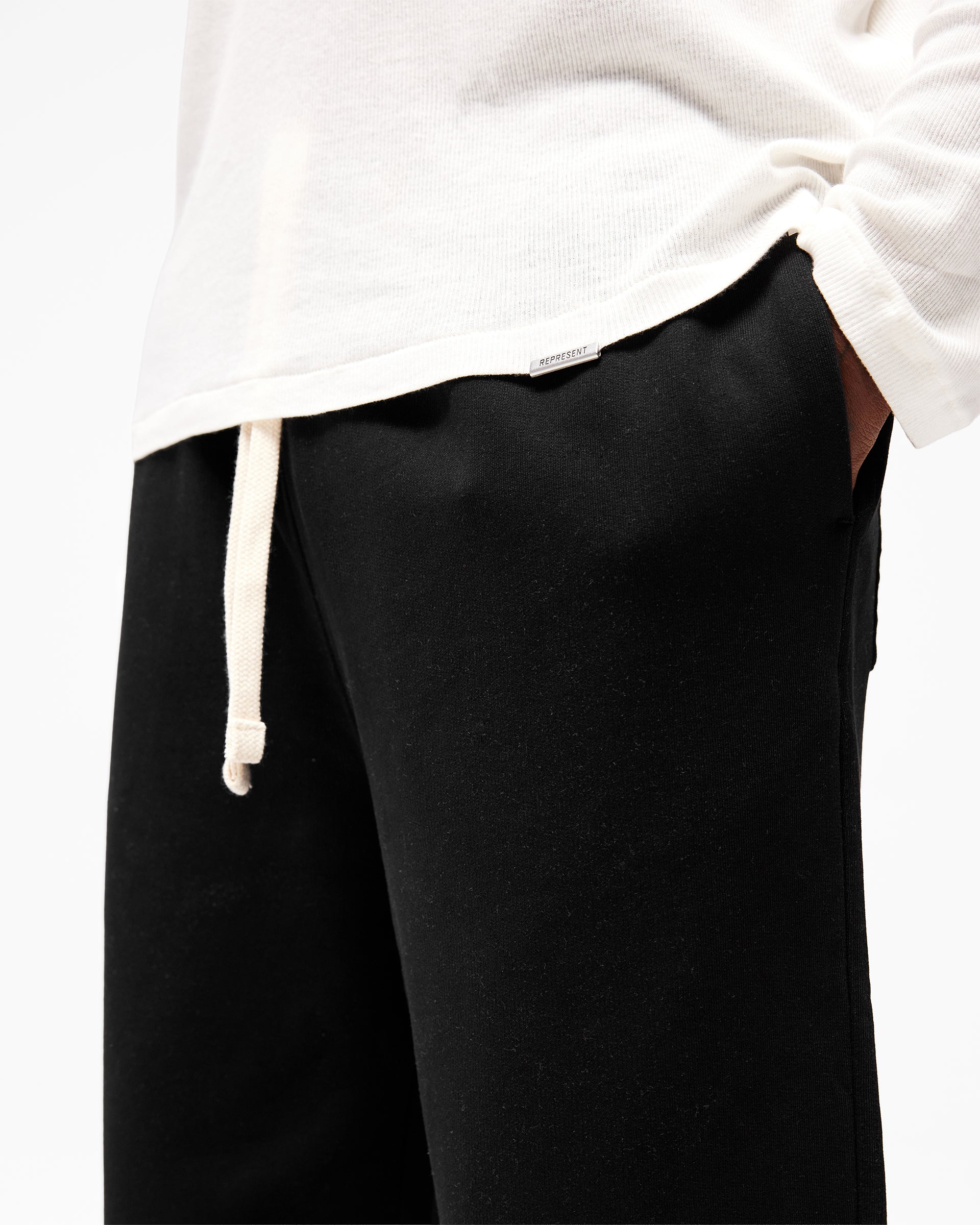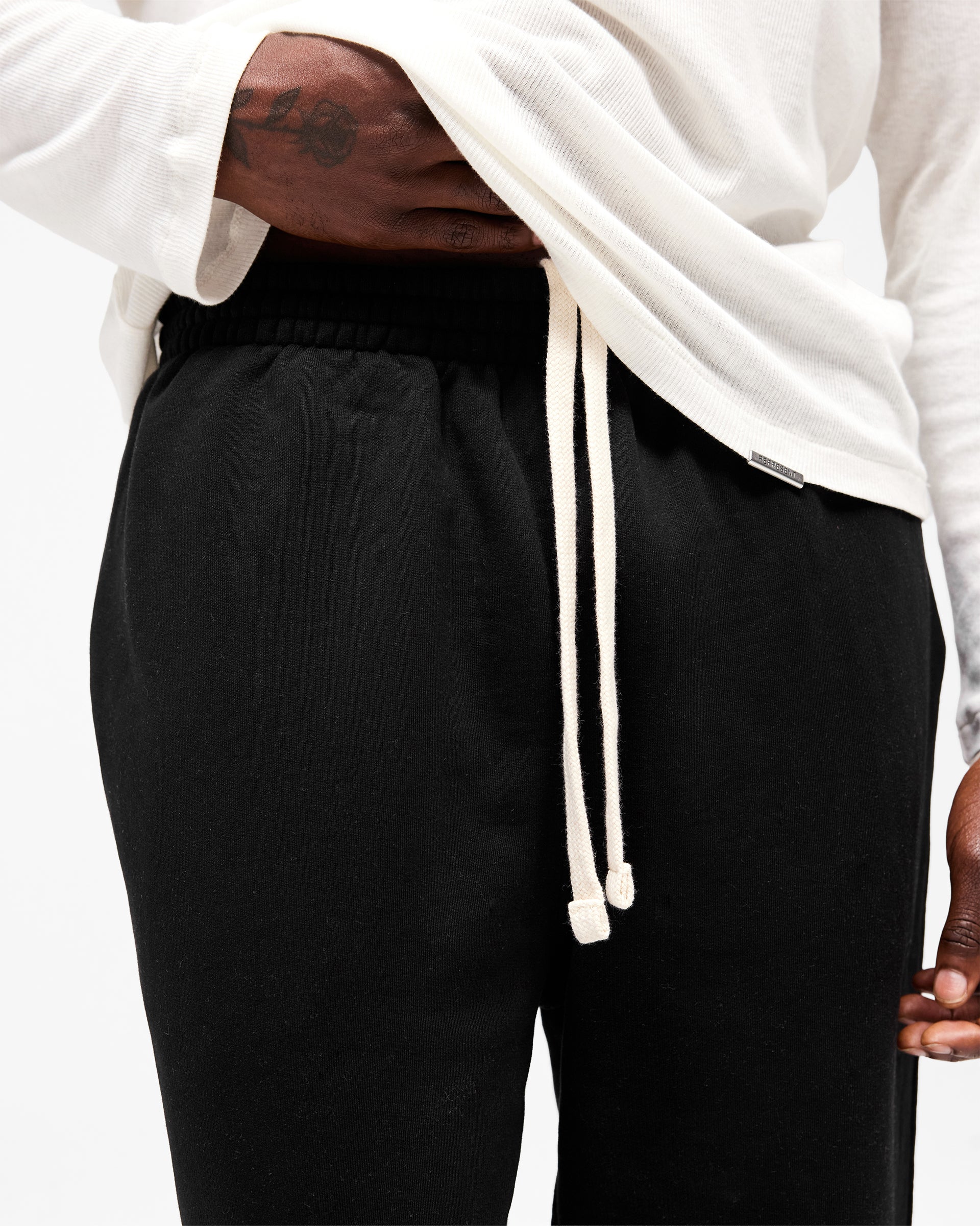 Heavyweight CottonCrafted from 390gsm cotton for a structured, heavyweight feel built for everyday wear.Wide Leg SilhouetteInitial 2.0 fit with a wide leg and elasticated cuffs for a clean, tapered finish.Functional DetailsElasticated waistband with drawcord, side pockets and patch pockets at the centre back.Signature FinishingFinished with a metal bar and Initial embroidery at the back pocket.
