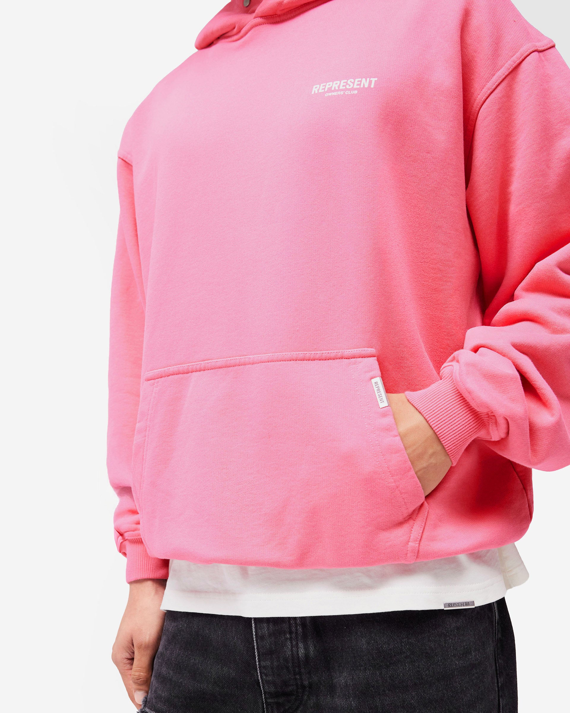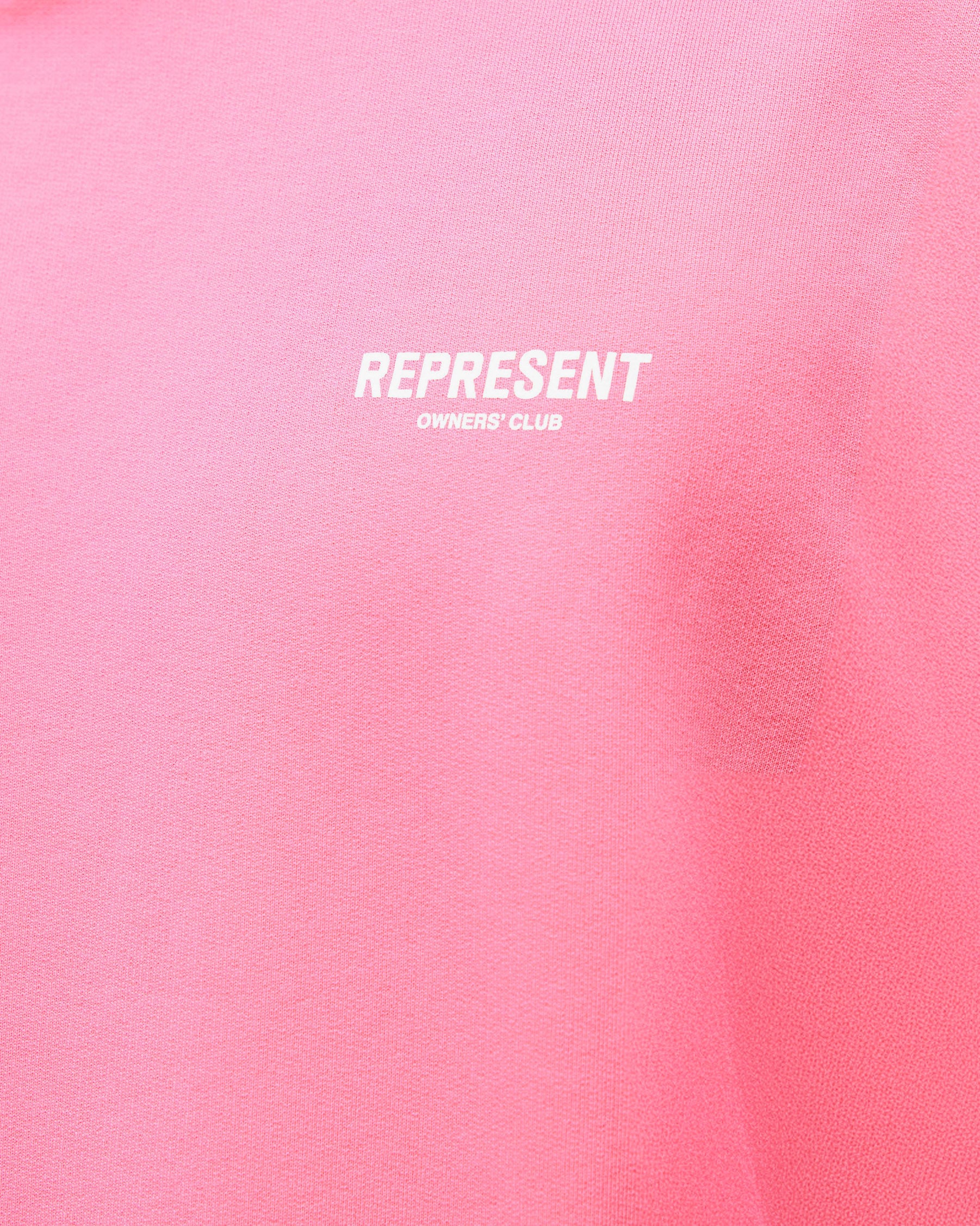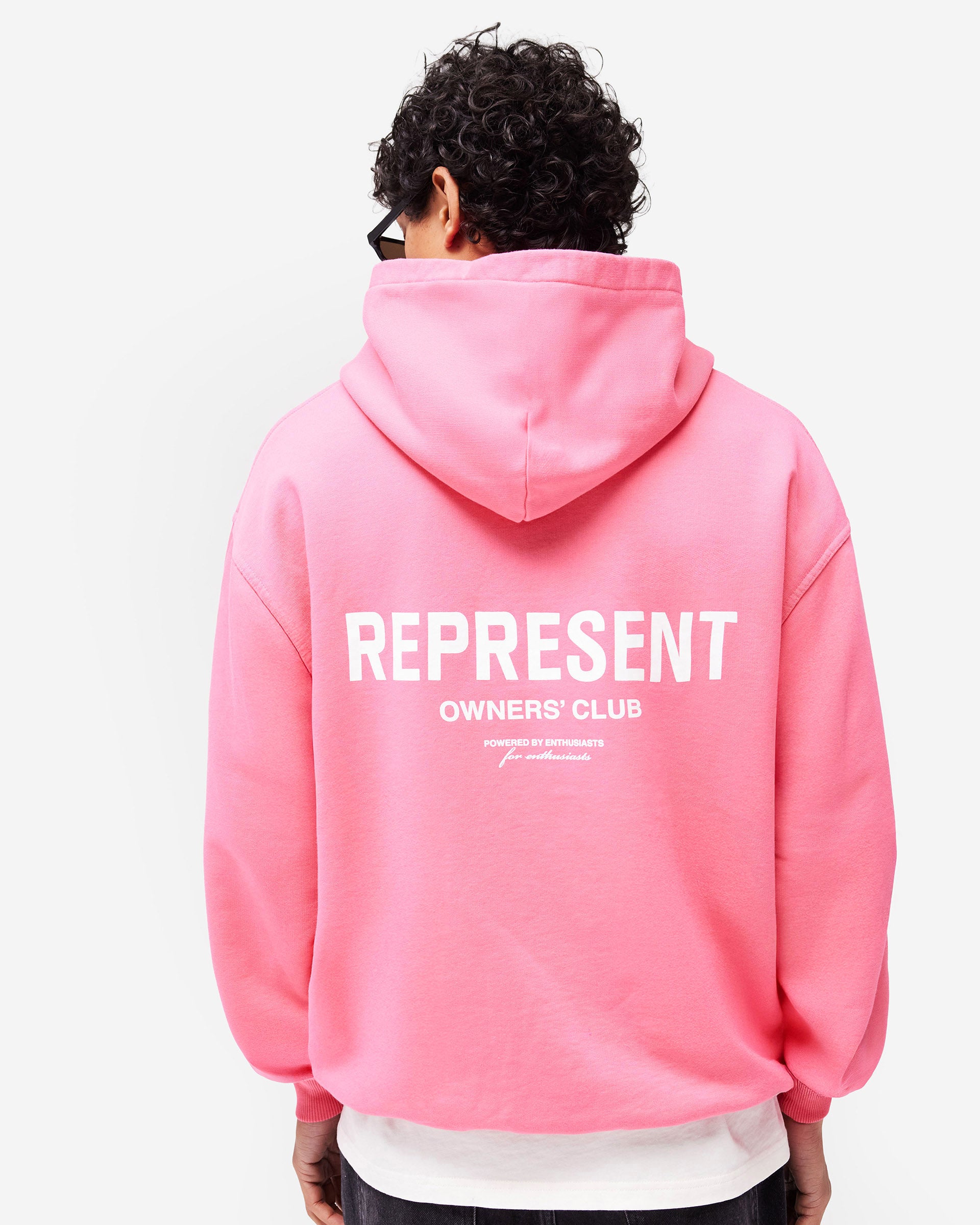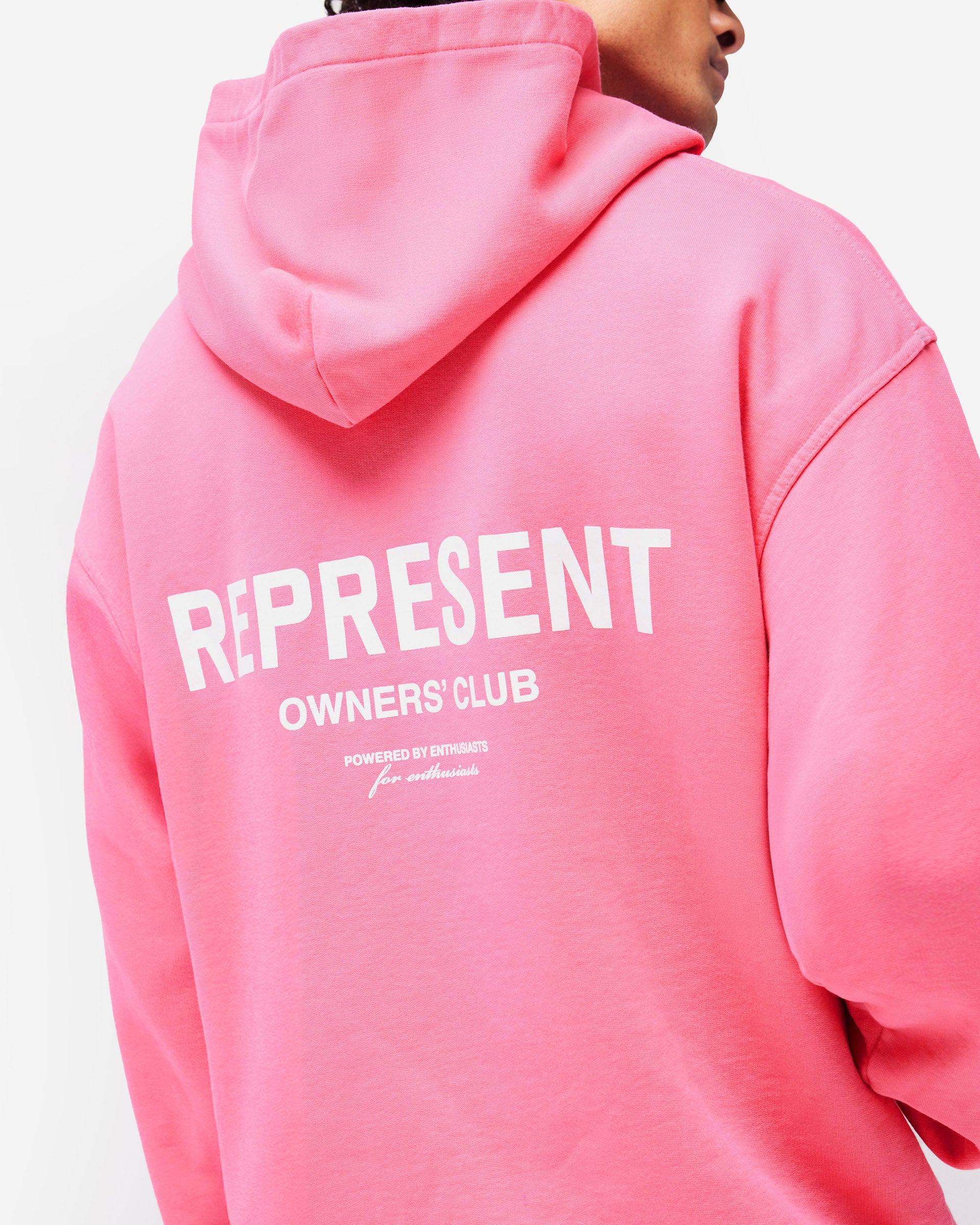 Introducing the Represent Owners Club Hoodie in Bubblegum Pink. Our most recognised piece, born in Manchester and worn worldwide. Cut from 480gsm heavyweight loopback cotton, piece dyed for depth of colour and pre-shrunk for a lived-in feel from the first wear. Owners Club branding sits to the chest and back, finished with a Cobrax popper hood, ribbed trims and our signature oversized fit that falls wide and square. Made in Portugal.