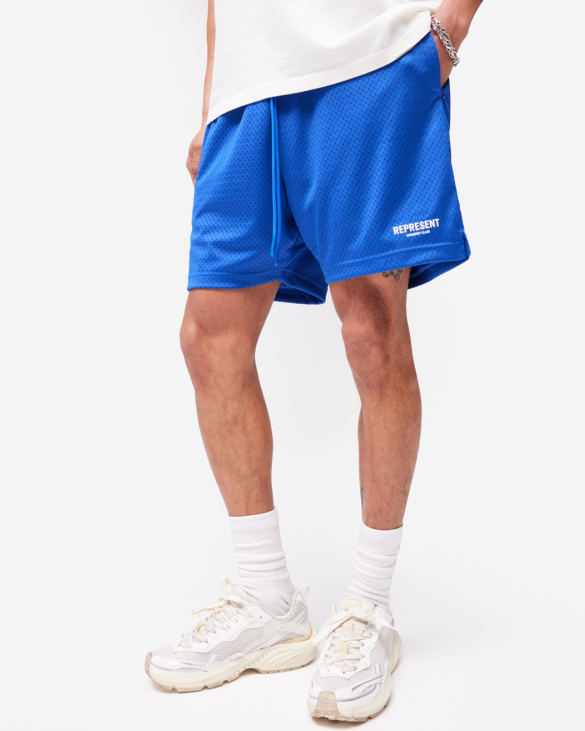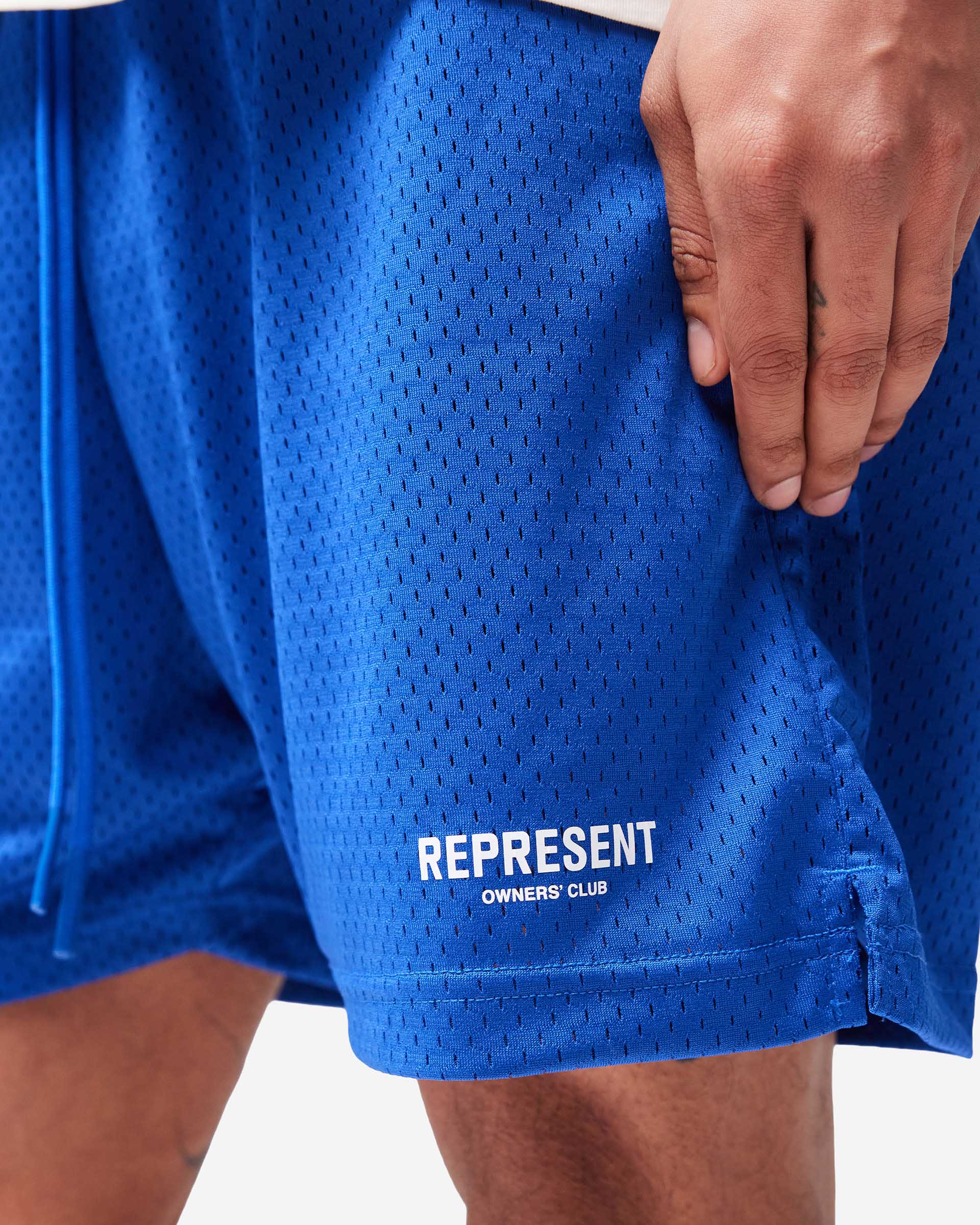 Introducing the Represent Owners Club Mesh Shorts. Our most recognised collection, born in Manchester and worn worldwide. Cut from a lightweight nylon-elastane blend for breathability and ease of movement. Fully lined with Owners Club branding to the leg, finished with an elasticated waistband, internal drawcord, welt pockets and a relaxed fit. Made in Portugal.