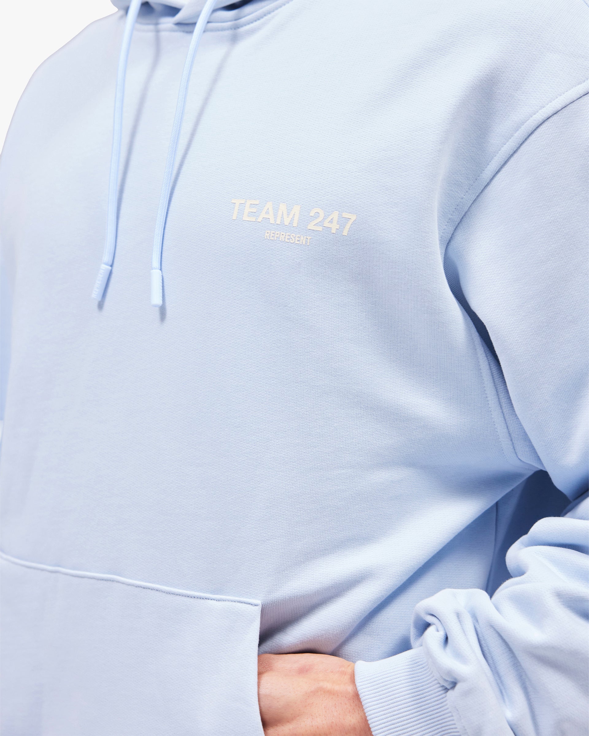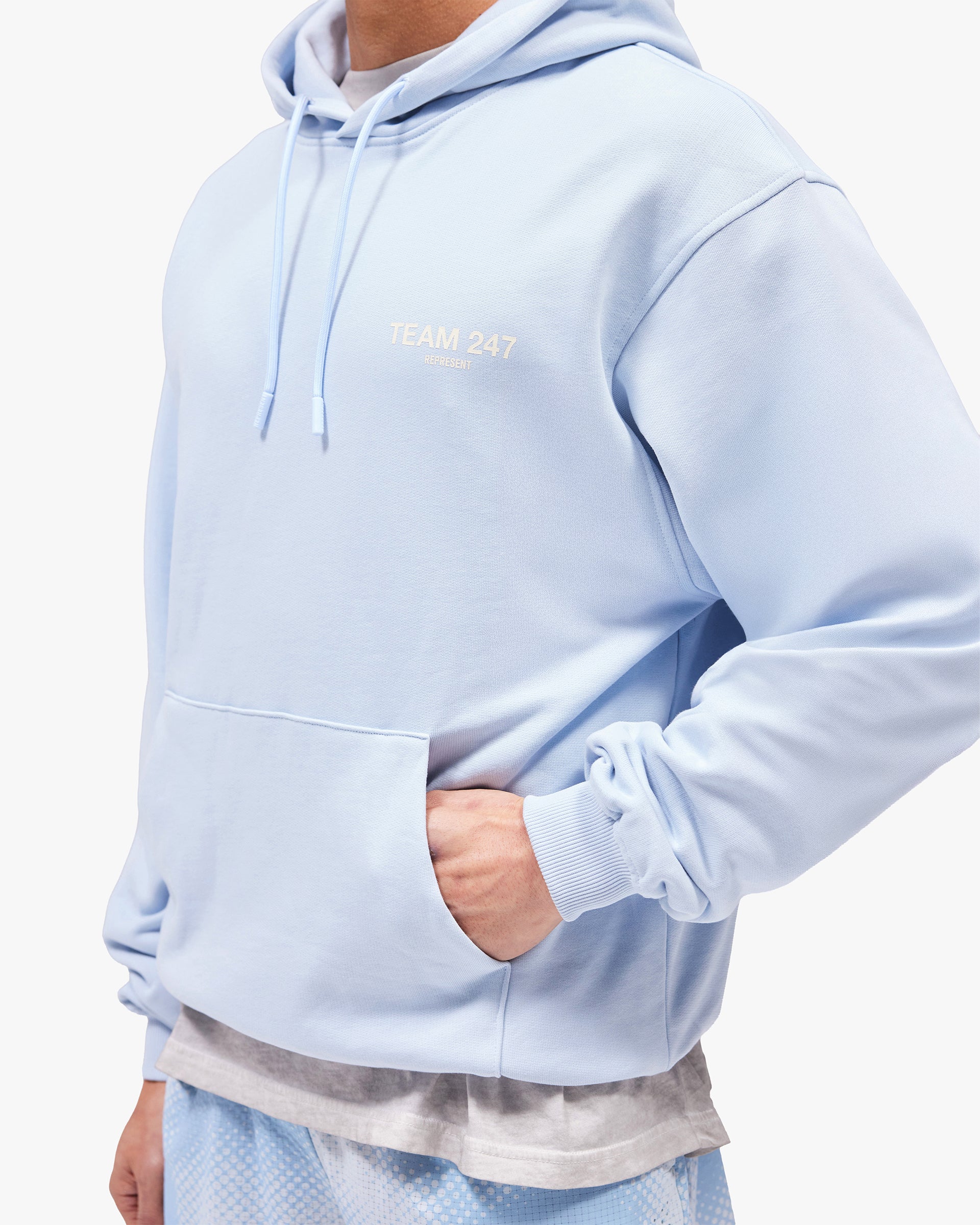 Introducing the Team 247 Oversized Hoodie in Glacier for SS26. The ultimate warm-up layer for outdoor workouts, on the way to the gym, or whilst priming your body to train. With an oversized fit as well as a ribbed hem and cuffs, the hoodie provides unparalleled comfort whatever the endeavour. Finished with Team 247 branding to the chest and back, with tonal drawcords to the hood for an adjustable fit.
